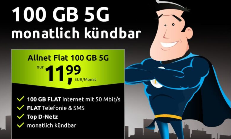 أقوى عرض إنترنت موبايل في ألمانيا: 100GB 5G + Allnet Flat مقابل 11,99€ فقط (بدل 34,99€)